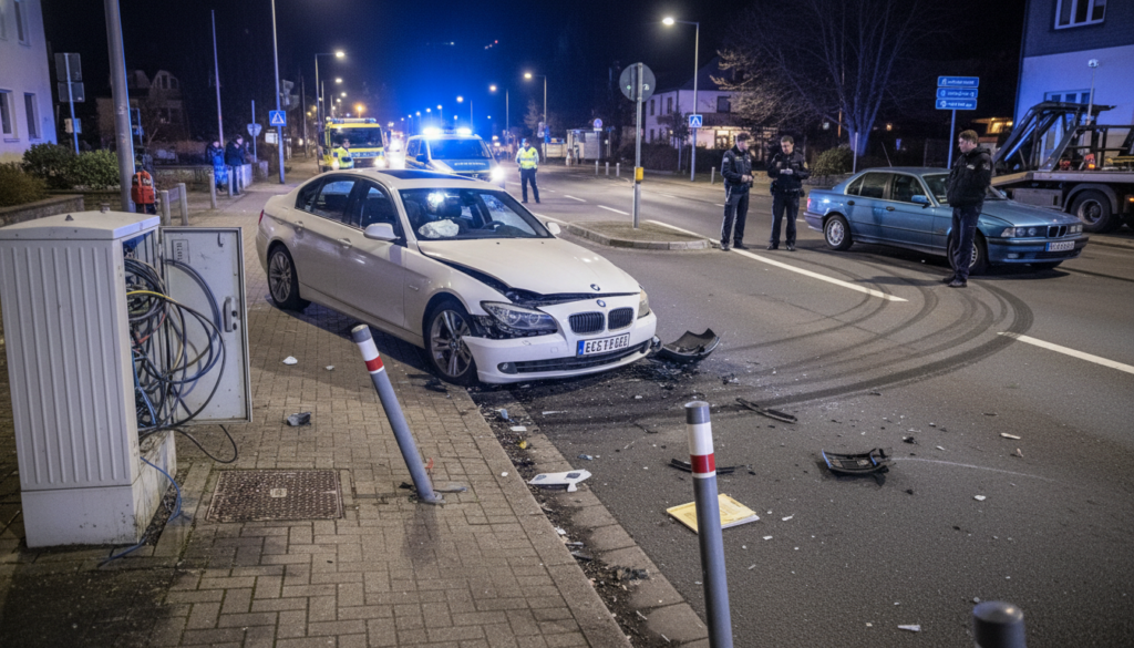 Am 21.02.2026 gegen 23:30 Uhr war ein 22-jähriger Mann aus der Verbandsgemeinde Bad Ems-Nassau mit seinem BMW in Bad Ems unterwegs. Er fuhr über die Bäderleibrücke aus Richtung Lahnstein kommend in Fahrtrichtung Nassau. Nach der Brücke bog er nach rechts in die Lahnstraße ein. In der Kurve geriet der BMW nach links von seiner Spur, überquerte eine Verkehrsinsel und fuhr über die Gegenfahrbahn.
