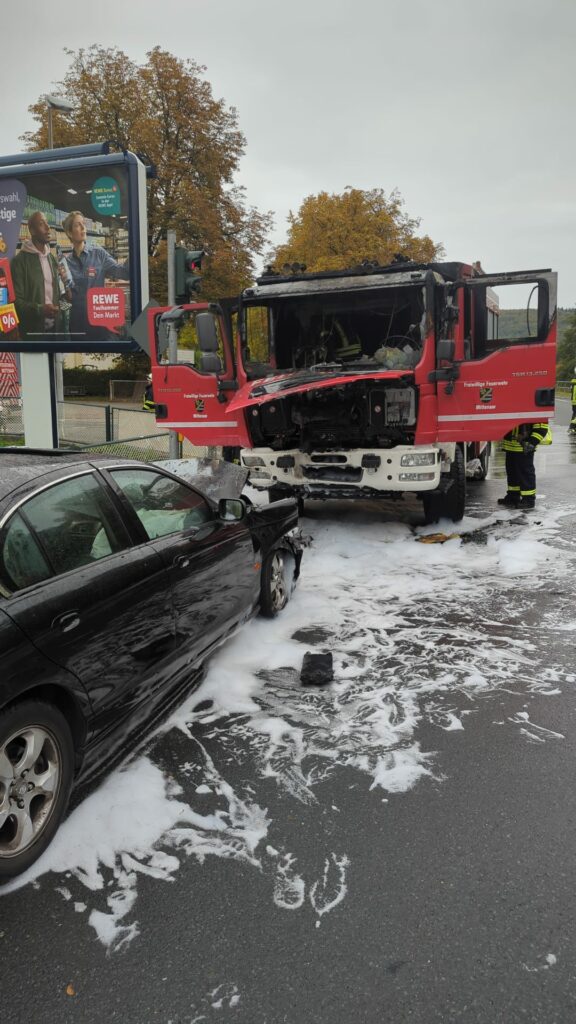 Nach Angaben der Polizei Gießen geriet der Autofahrer aus bislang ungeklärter Ursache auf die Gegenfahrbahn und prallte mit voller Wucht gegen das Löschfahrzeug. Beide Fahrzeuge gingen in Flammen auf. Den jungen Feuerwehrleuten gelang es, sich rechtzeitig aus dem brennenden Fahrzeug zu retten. Sie blieben unverletzt. Der Fahrer des Pkw erlitt leichte Verletzungen und wurde zur weiteren Untersuchung in ein Krankenhaus gebracht.