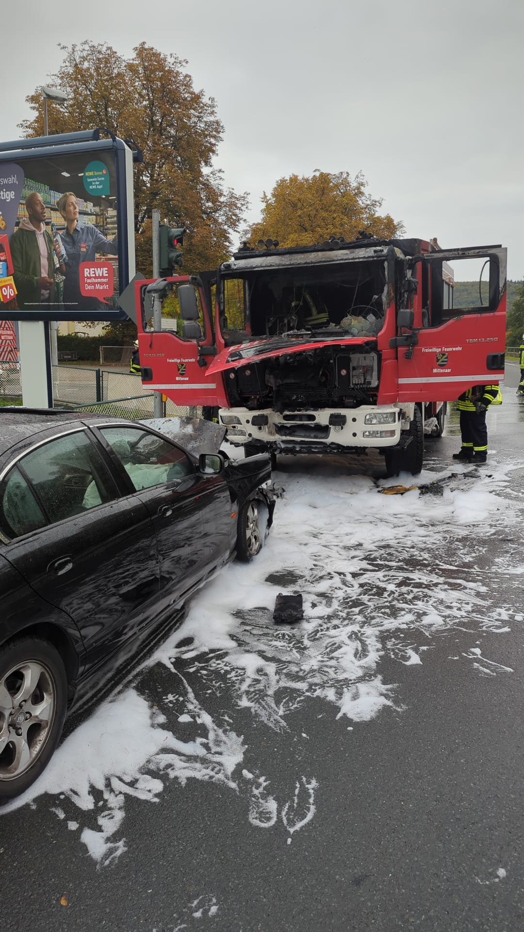 Rund 45 Einsatzkräfte der Feuerwehren Mittenaar und Herborn-Seelbach waren im Einsatz, um den Brand zu löschen und die Unfallstelle abzusichern. Die Polizei hat die Ermittlungen zur Unfallursache aufgenommen.