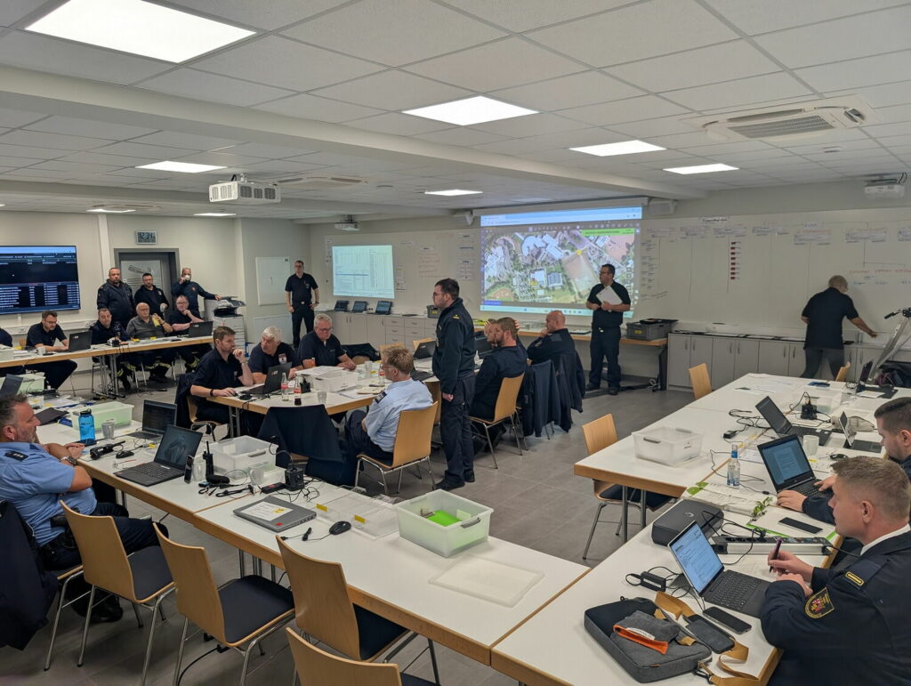 Staatssekretär Daniel Stich erläuterte vor Ort: „Neu ist, dass wir landesweit überall üben – und zwar die Ehrenamtler und die Hauptamtler gemeinsam. Seit Januar haben wir ein Landesamt mit dem bundesweit ersten Lagezentrum für Bevölkerungsschutz, in dem alle Einsätze zentral koordiniert werden. Eine solche landesweite Lage zu sehen und entsprechend einzugreifen, ist für uns neu.“