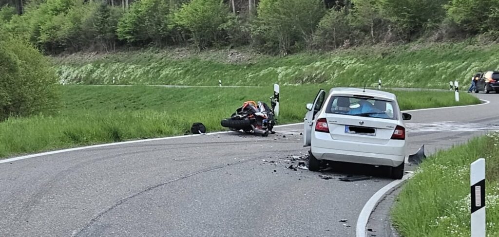 Am 23.04.2026 kam es gegen 19:15 Uhr auf der L 339 zwischen Kaub und Weisel zu einem schweren Verkehrsunfall zwischen einem Motorradfahrer und einem Pkw im Gegenverkehr.